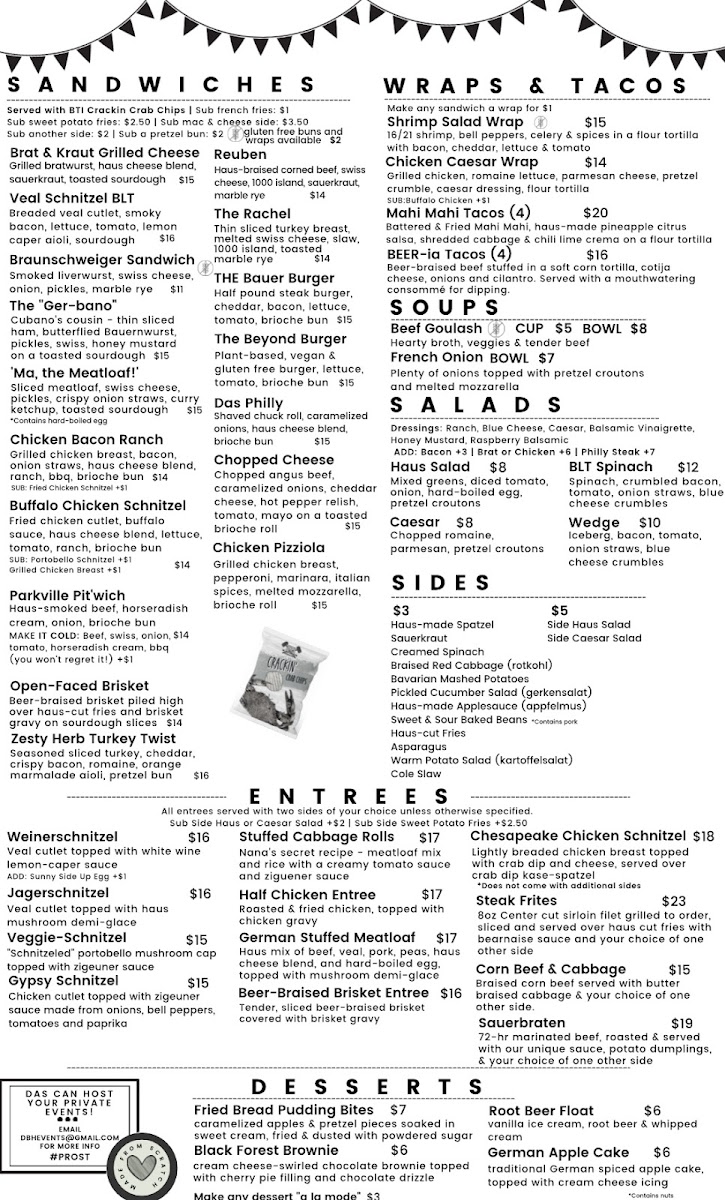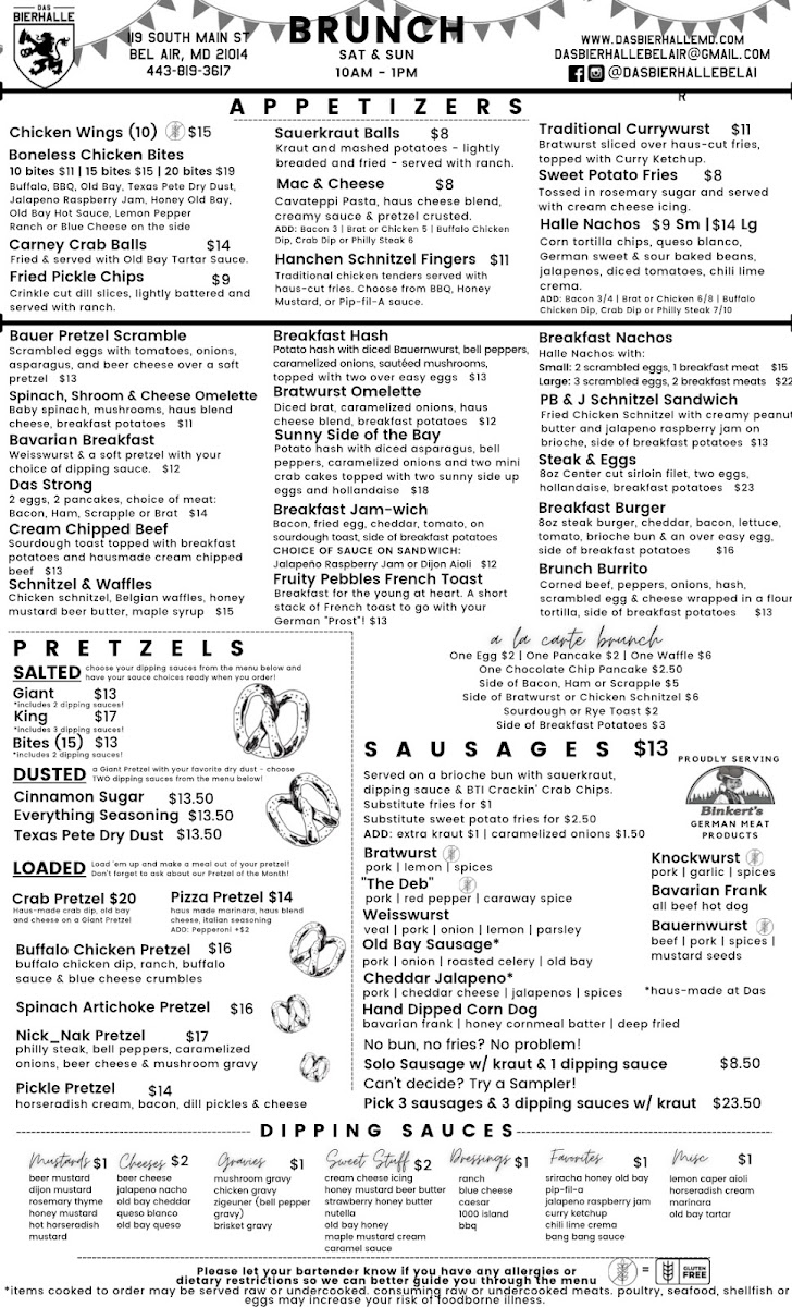 Choice of any 9 sausages on a bed of sauerkraut and your choice of 5 dipping sauces